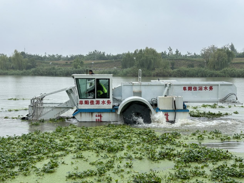 近日,受連續(xù)降雨及上游來水影響,潁河阜陽節(jié)制閘、市茨河鋪閘、七漁河排澇泵站等水利工程上下游,滯留大量水草與雜物,嚴重影響水質(zhì)和河道景觀。為進一步提升河道水域環(huán)境,遏制水生植物蔓延態(tài)勢,自9月下旬起,阜陽佳源水務管理有限公司(阜陽市水利工程有限公司全資子公司)啟動水面漂浮物專項清理行動,組織專業(yè)力量與設備為淮河、泉河、潁河等重點流域“減負”,守護城市水生態(tài)環(huán)境、保障民生安全。